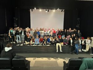 Dos alumnas de los ciclos de Automoción y Animación Sociocultural y Turística realizaron la lectura del manifiesto. Ellas pusieron voz al mensaje colectivo de nuestro centro en este día tan significativo. También disfrutamos de la interpretación del alumnado de Mediación Comunicativa, que signarón en lengua de signos la canción “Se portaba mal” de Kany García y Mon Laferte. Al mismo tiempo, el alumnado de Animación Sociocultural y Turística realizará una teatralización de la misma, uniendo lenguaje, música y expresión para transmitir un mensaje de fuerza, denuncia y esperanza.
