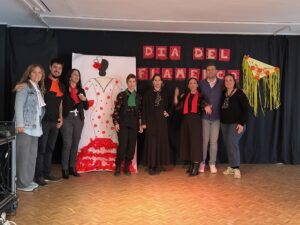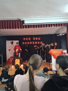 Uno de los momentos más esperados de la mañana fue la actuación en directo de un grupo flamenco invitado, que ofreció una exhibición de cante, guitarra y baile, acercando al público la esencia del flamenco en vivo y despertando un gran interés entre el alumnado.