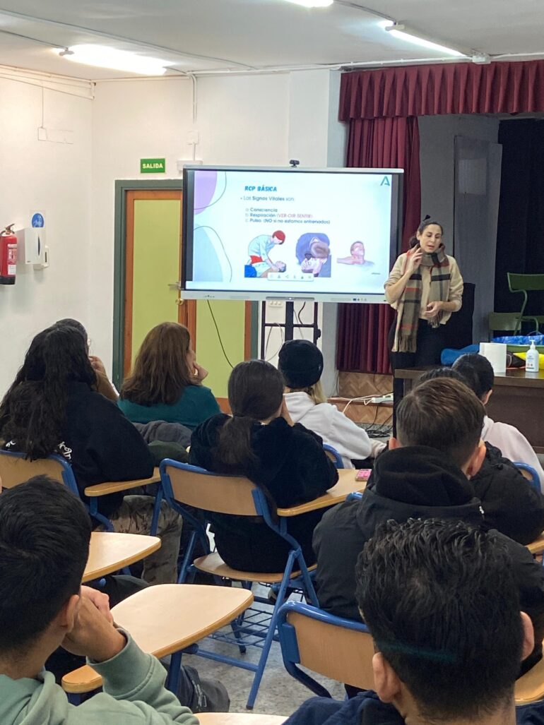 Durante los días 18 y 19 de noviembre con la colaboración de Blanca y el departamento de FOL, hemos llevado a cabo los talleres de Primeros Auxilios y Reanimación Cardiopulmonar (RCP) que tienen como objetivo proporcionar al alumnado de primer curso de CFGM y CFGS las habilidades básicas necesarias para actuar de manera eficaz ante situaciones de emergencia. Durante estas sesiones, se trabajaron los protocolos de actuación inicial, la valoración del estado de la víctima y la aplicación de las técnicas fundamentales de RCP y primeros auxilios.